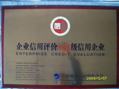2009年12月3日,我公司被中國物流與采購聯(lián)合會評為企業(yè)信用評價(jià)AAA級信用企業(yè)。