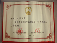 公司董事長趙陽榮獲"全國物流行業(yè)勞動模范"稱號